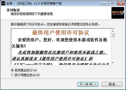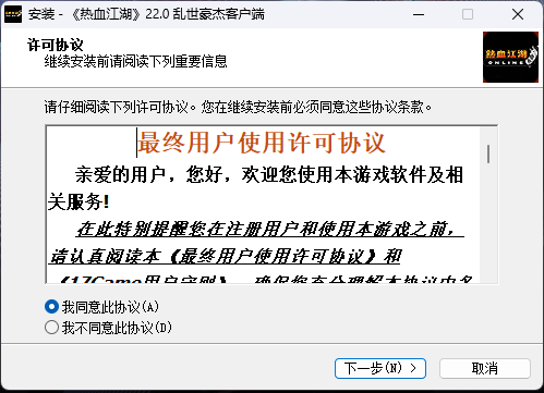 待出现以下图示后,选择“下一步”并且选择“同意此协议”。 |