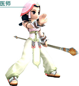 医师职业来源于漫画书中的角色——天云岳。他是天下五绝——医仙的孙子,还担任武林正派碧风门的少门主。具有出色的武功,还继承有高超的医术,是江湖中少有青年才俊。自称“美公子”,相当自我陶醉,跟比武大赛中认识的韩飞官是宿敌。本性不恶但是相当自恋…… 医师除了攻击魔法以外,更多的是物理加强、防御,治疗等辅助魔法,这样,身体孱弱不堪一击的医生在防御辅助魔法的协助下也可以在危险地带自如的施展法力了。 |