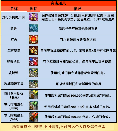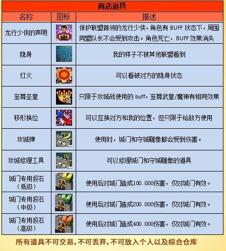 守城管理员和攻城管理员处都可以买到攻城战所需道具。