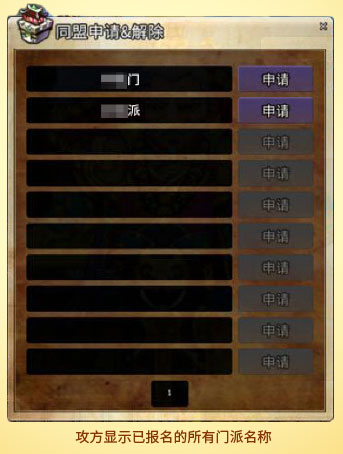 门主也可通过申请加入同盟方式参与攻城战活动