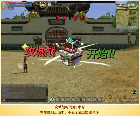 >攻城战开始前五分钟会有提示通知