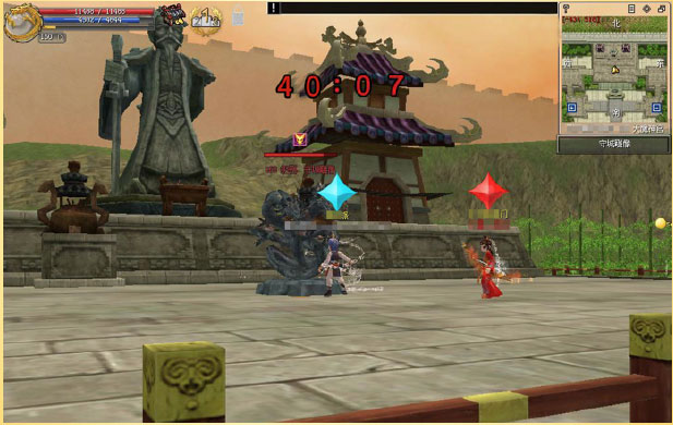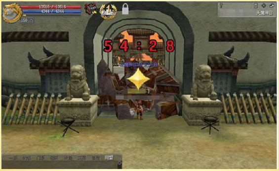 >进入天魔神宫内,找到在地图高台上屹立的守城雕像进行攻击。