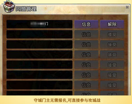 攻方门主在同盟管理中可选择确认接受的同盟