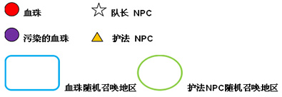 与一般势力战不同,地图中会有血珠,打到血珠时,队长生命值恢复;打到紫色血珠时,则己方队长生命值减少。