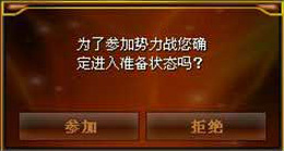 不是点击参加按钮后都可以参加势力战。申请参与势力战后到进入5分钟倒计时,会弹出入场等待窗口。点击参与按钮后进入势力战地图,点击拒绝按钮后会把参与权转给等待参与的玩家。