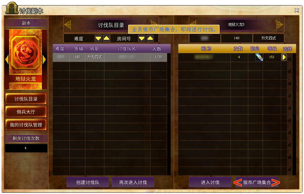 进入方式:团队在银币广场集合,需每人持有讨伐队入场券。