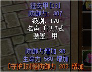 鸿轩耳环-(魔) | 所有气功等级增加4,武功攻击力20%,生命力400,追加伤害值100。 |