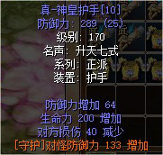 鸿轩耳环-(碎)(梅柳真) | 所有气功等级增加4,命中率20,生命力440,障力恢复量100。 |